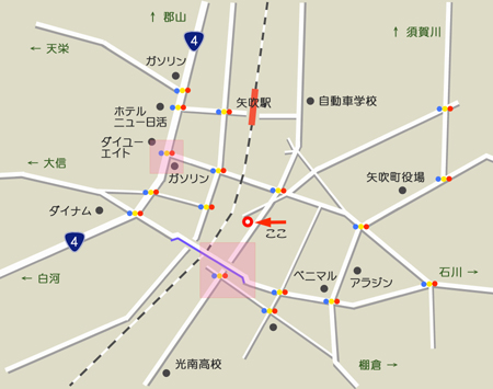 4号国道からはダイユーエイトとガソリンスタンドのある大林交差点を曲がる。
